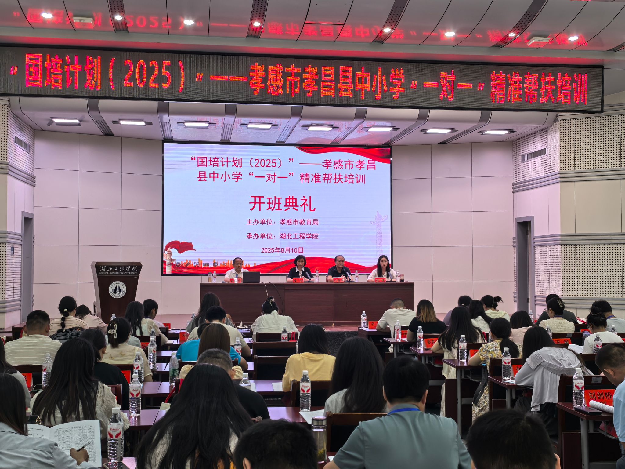 8月10日,“国培计划(2025)”——孝感市孝昌县中小学“一对一”精准帮扶培训第一阶段集中培训开班典礼在湖北工程学院文学楼举行。